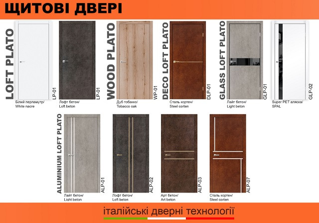 Розміри полотен: 2000*400/ 600/ 700/ 800/ 900 мм. Товщина 40 мм.